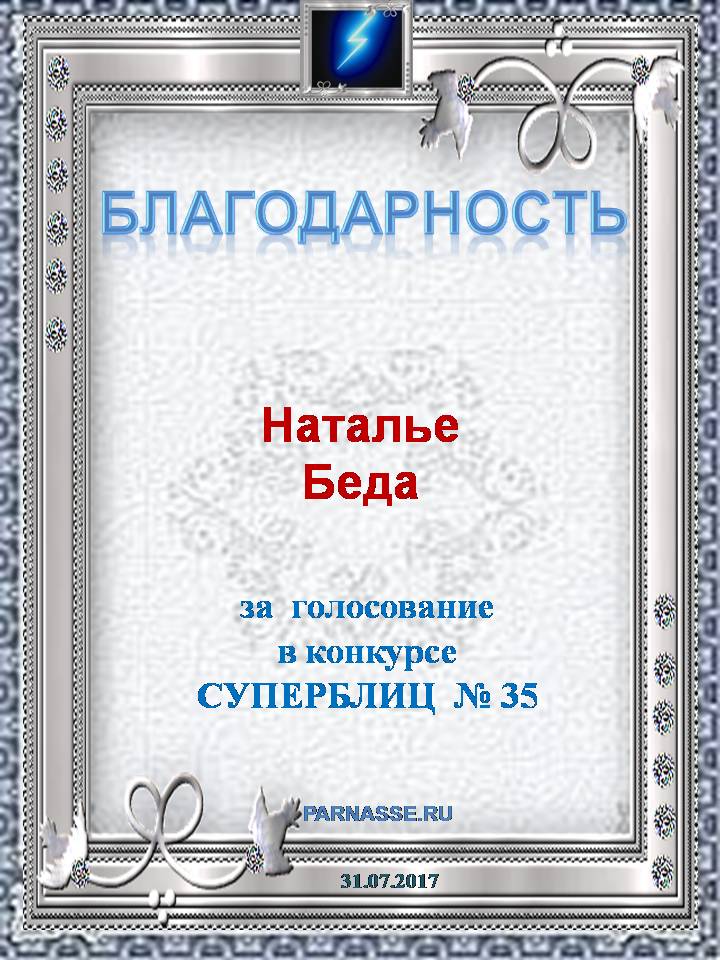 Благодарность за активное голосование в 35 конкурсе СУПЕРБЛИЦА!СПАСИБО БОЛЬШОЕ!