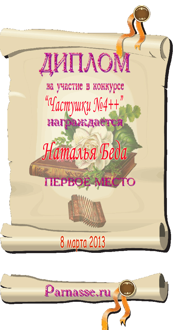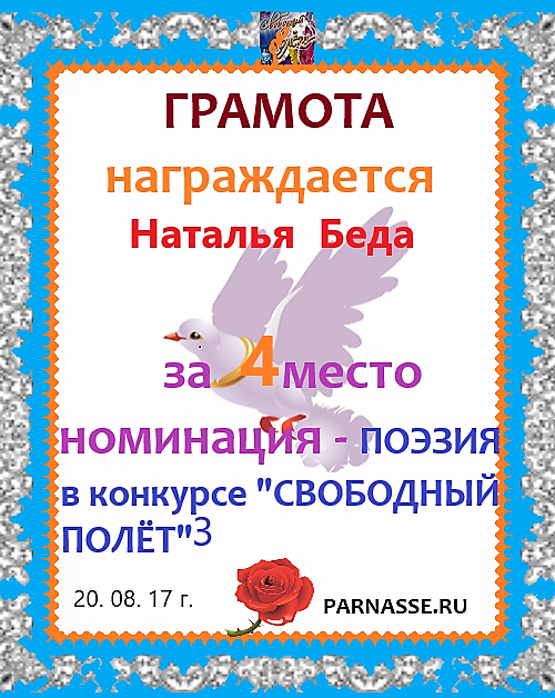 Грамота за 4 место в 120 конкурсе АКРОСТИХА (Альтернатива)! ПОЗДРАВЛЯЮ!