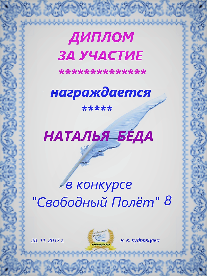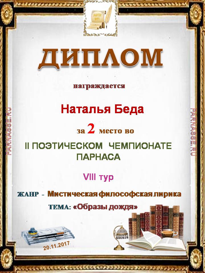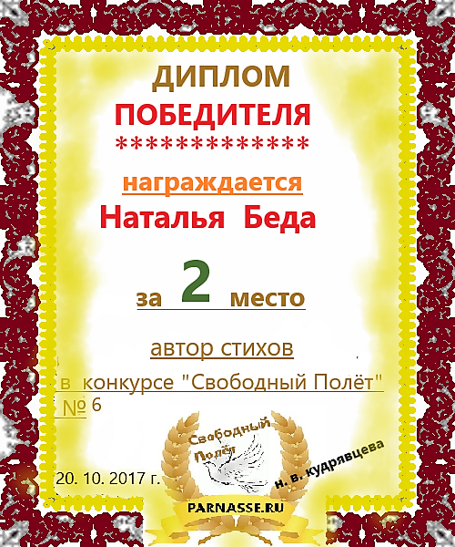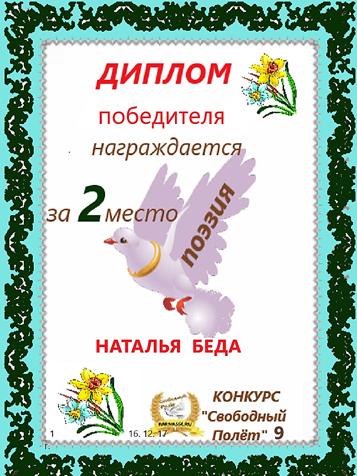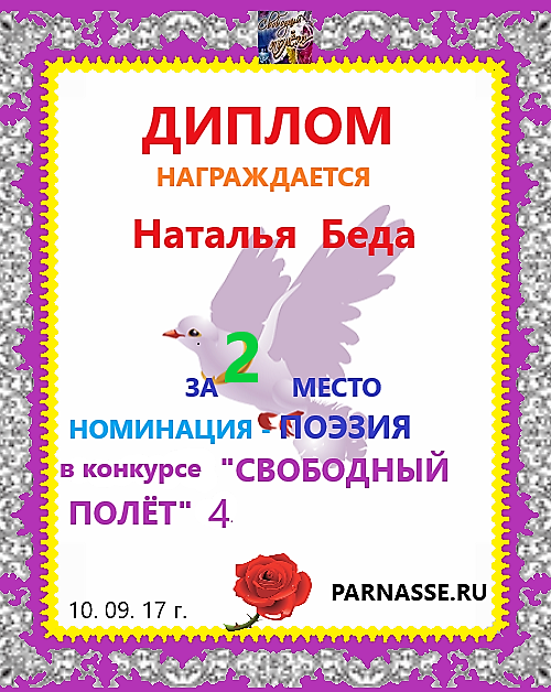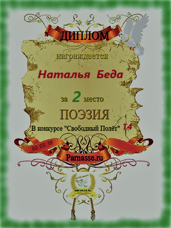 Диплом за 2 место в 135 конкурсе АКРОСТИХА (Альтернатива)! ПОЗДРАВЛЯЮ!