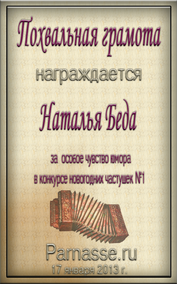 Похвальная грамота за 5 место в конкурсе лимериков № 32+ (14.01.2013 г.)