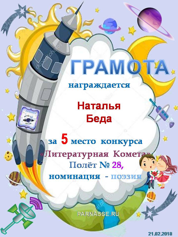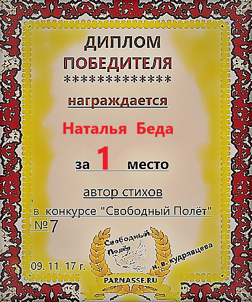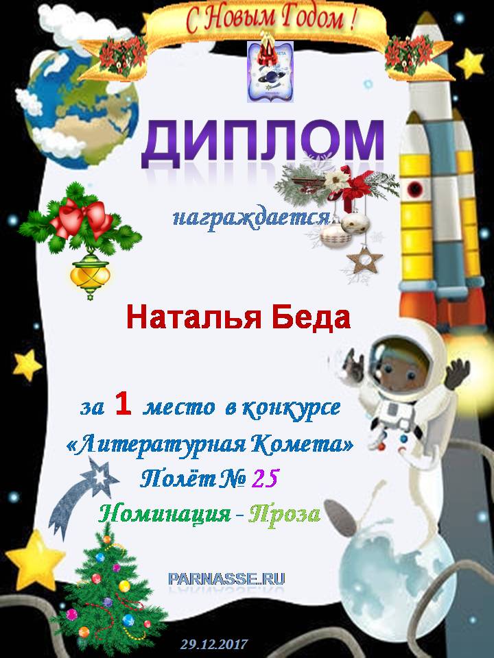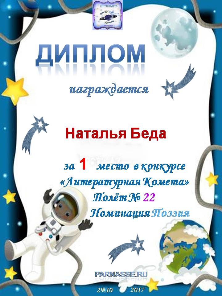 За 1 место в конкурсе "Литературная Комета - Полёт № 33" - номинация поэзия