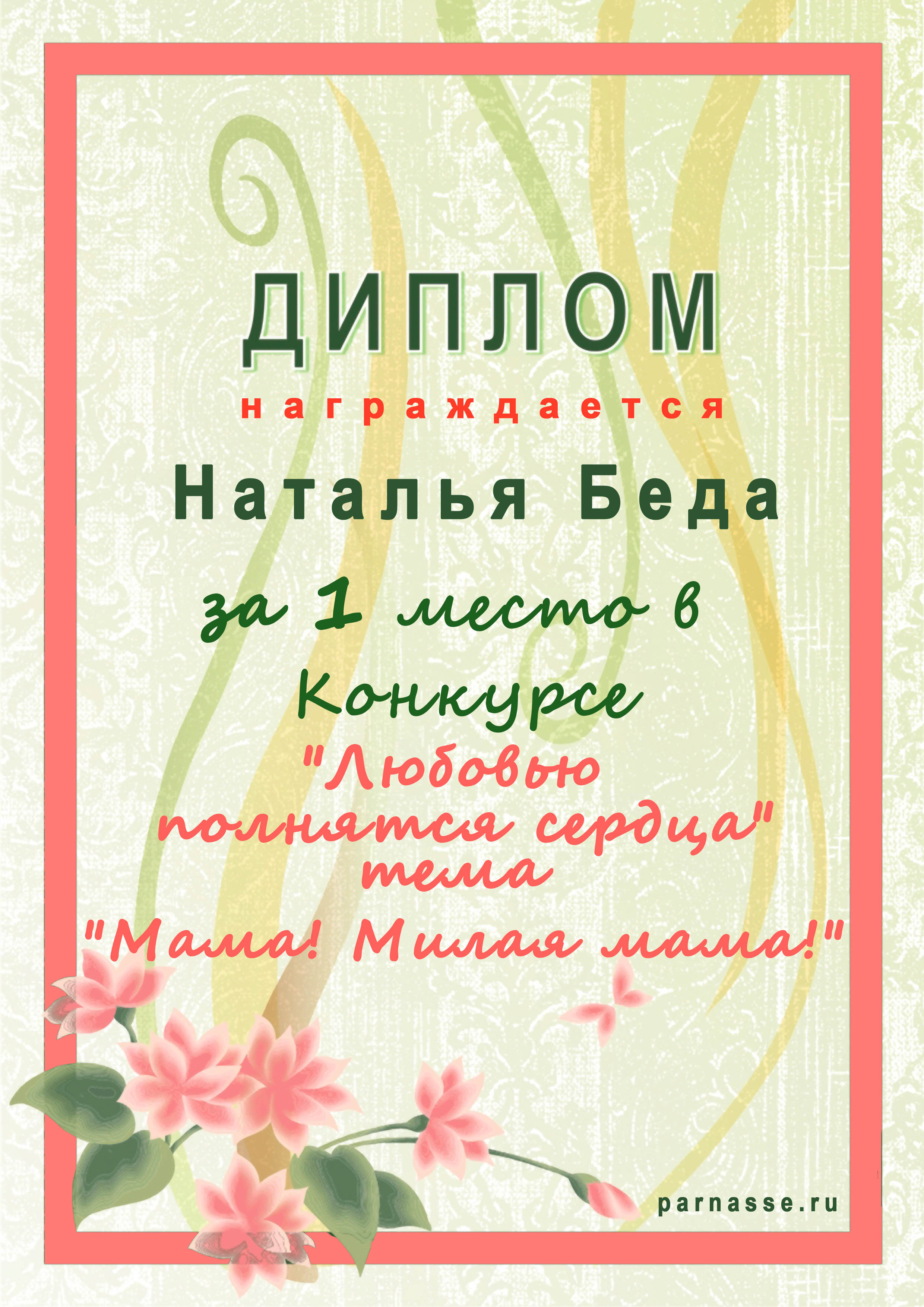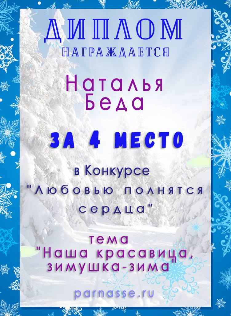 Уважаемая Наталья, поздравляем Вас с заслуженной победой!Счастья, любви и вдохновения!!!