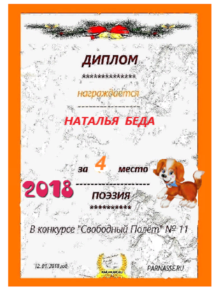 Поздравляю с победой - 1 местом в номинации Поэзия! Желаю счастья, благополучия и здоровья в наступающем году! Пусть будут новые творческие успехи на радость всем нам!