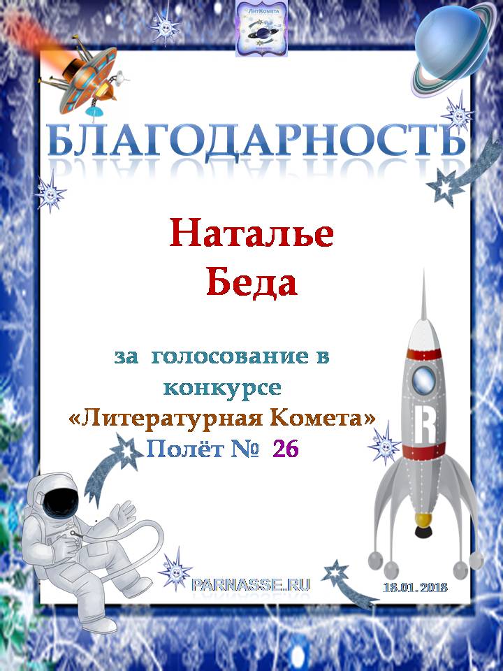 За поддержку конкурса - "Литературная Комета - Полёт № 34"