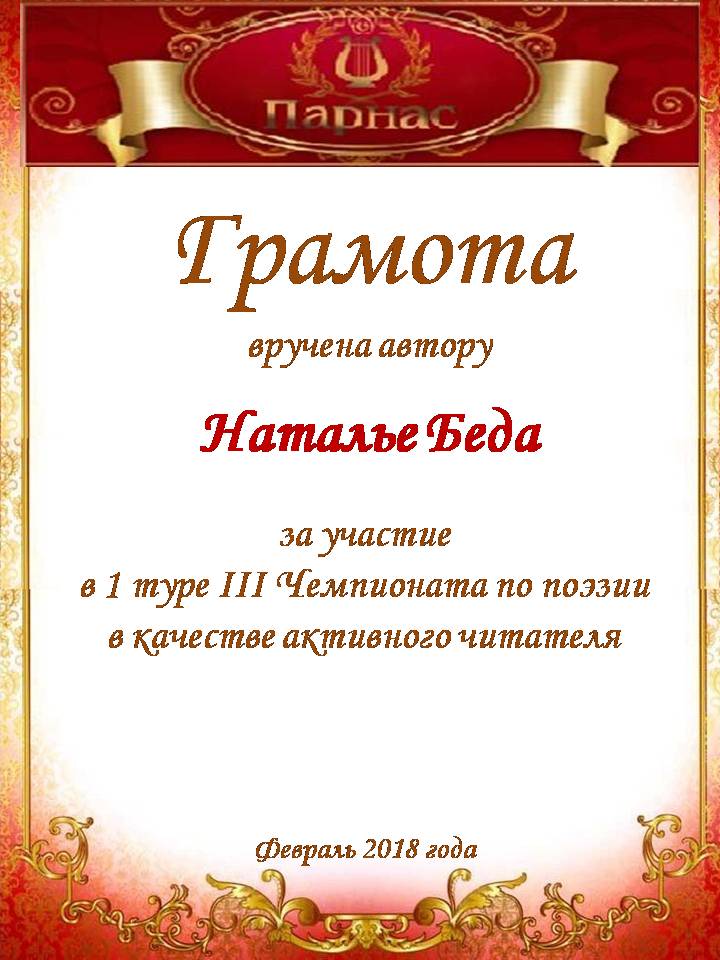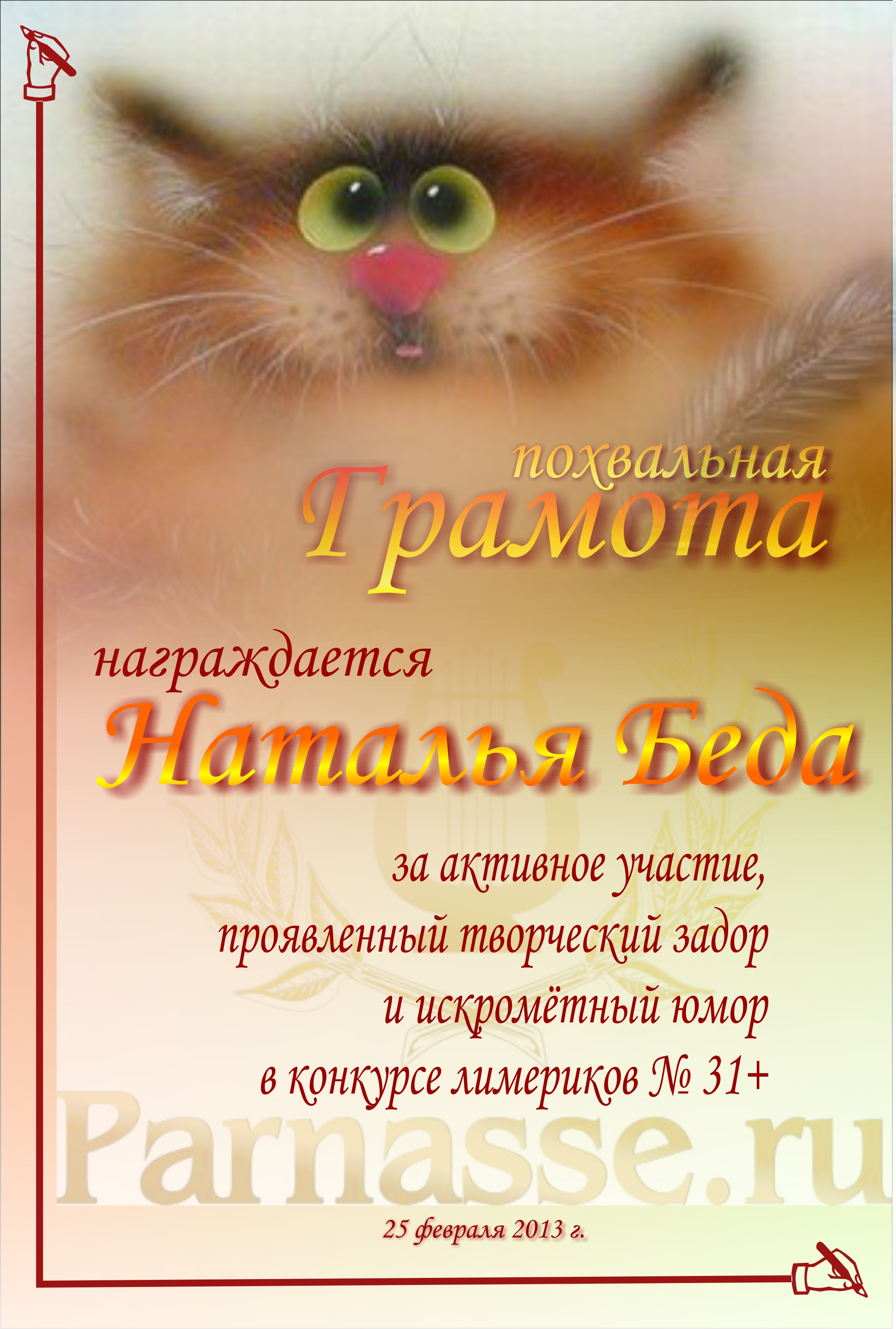 Похвальная грамота за участие в конкурсе лимериков № 31+ (25.02.2013 г.)