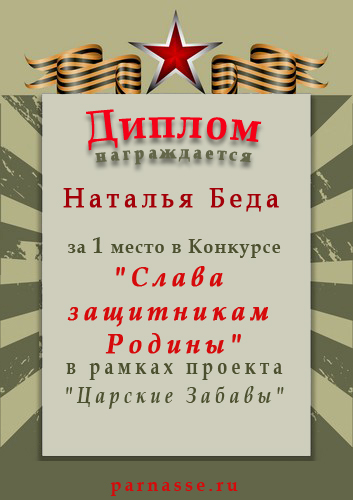 НАТАЛЬЯ! ПОЗДРАВЛЯЮ С ЗАСЛУЖЕННОЙ ПОБЕДОЙ! ТАК ДЕРЖАТЬ!