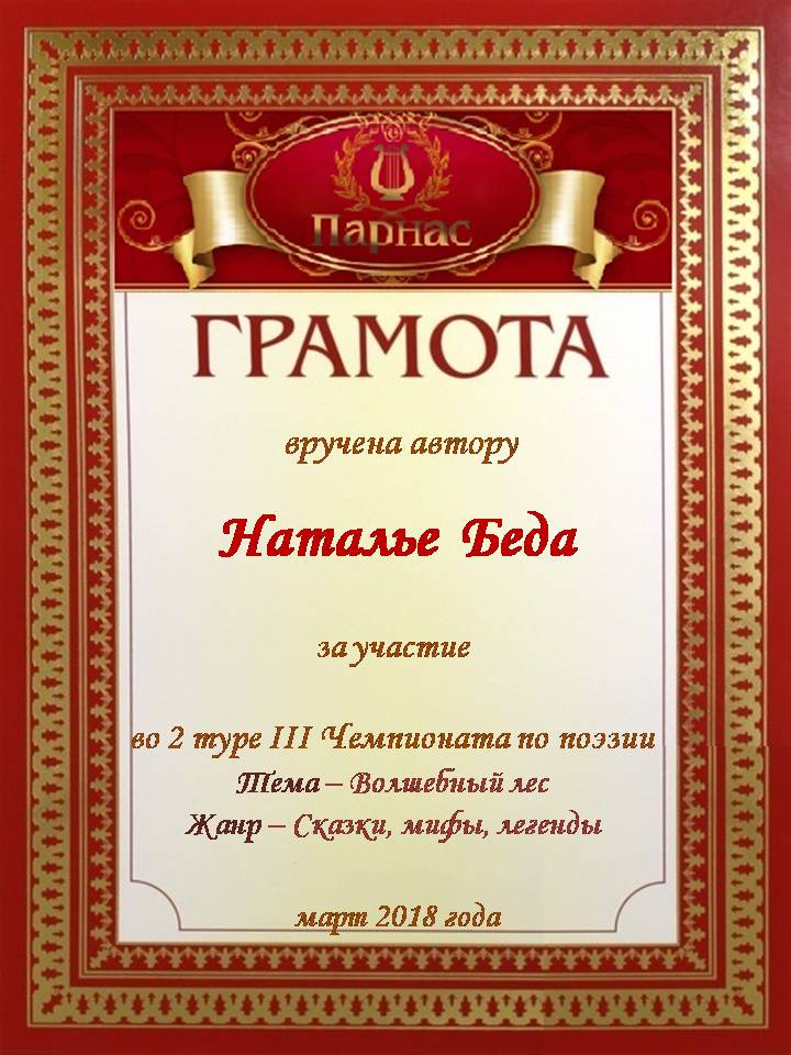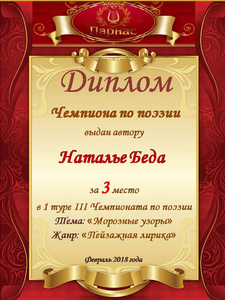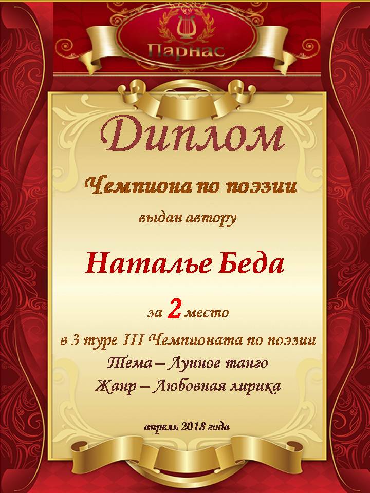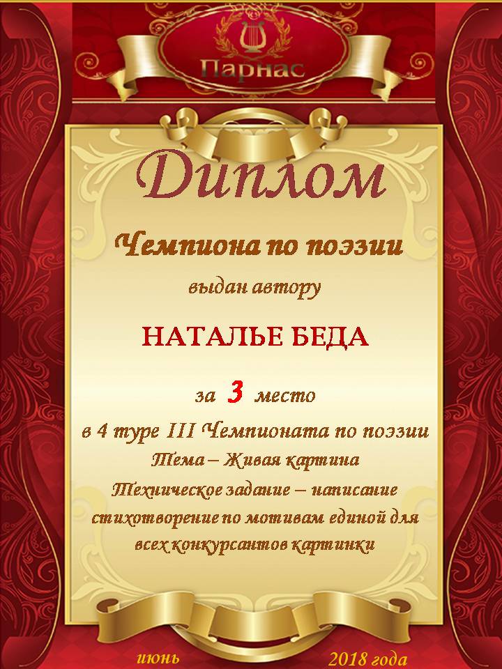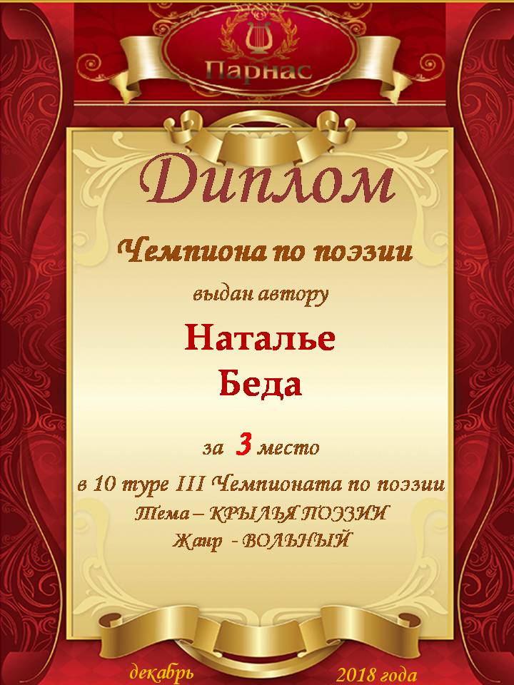Поздравляем с занятым 3 местом в 10 туре III Чемпионата по Поэзии!