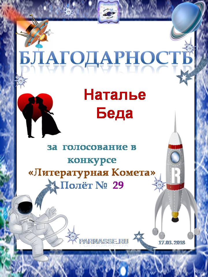 Огромное спасибо за поддержку конкурса «ЛитКомета – Полёт № 29»!