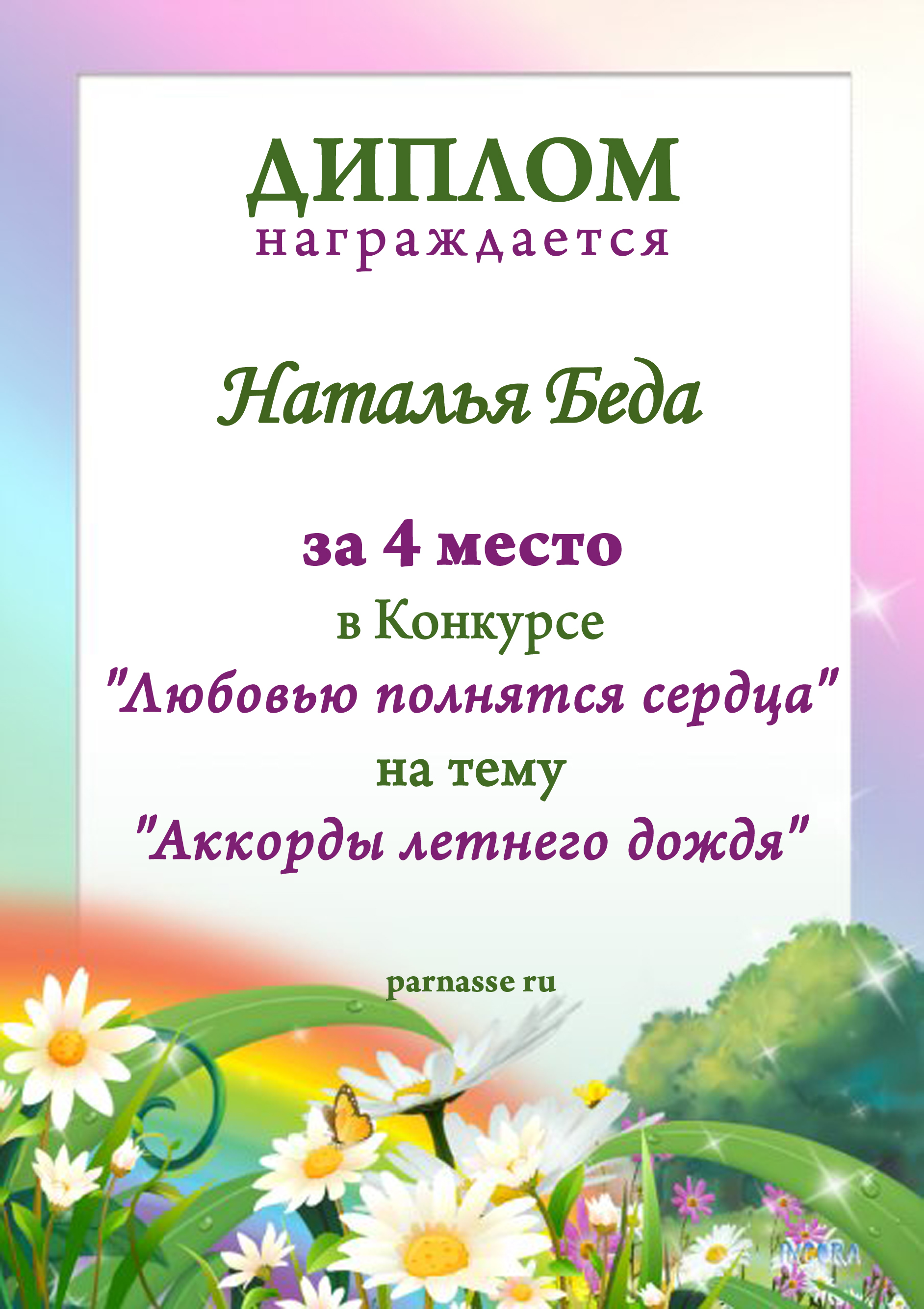 За 4 место в Конкурсе на тему "Аккорды летнего дождя"