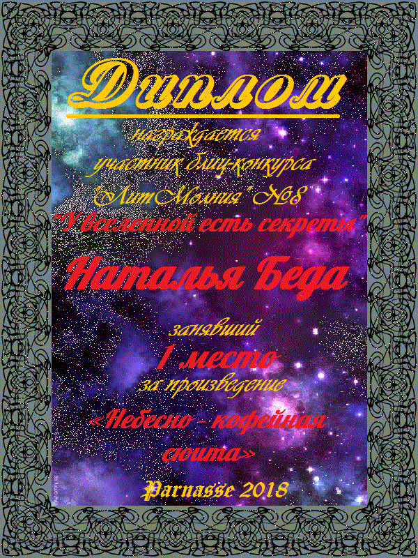 Первое место в Блиц-конкурсе №8 "У вселенной есть секреты" за произведение «Небесно – кофейная сюита». Поздравляем!