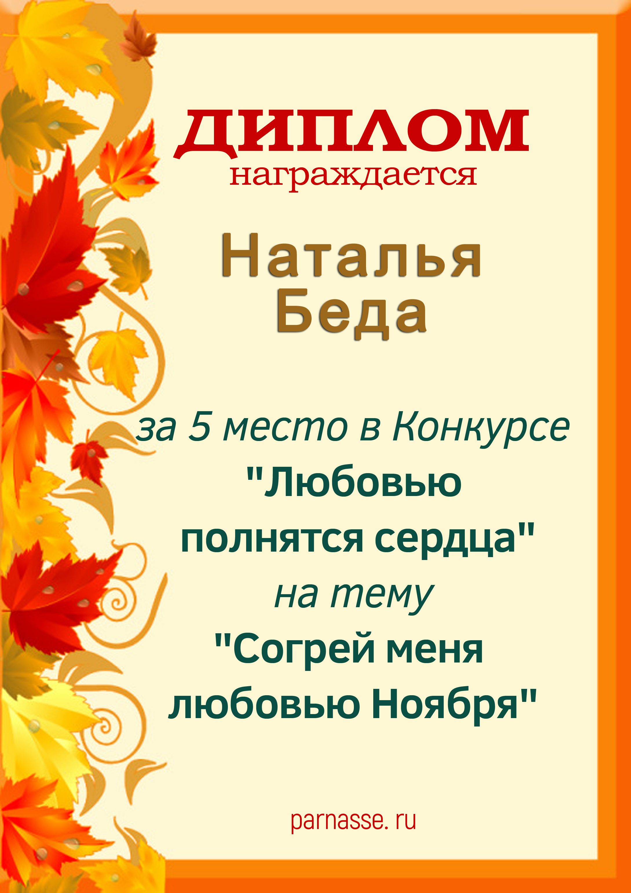 За 5 место в Конкурсе "Любовью полнятся сердца" на тему "Согрей меня любовью Ноября"