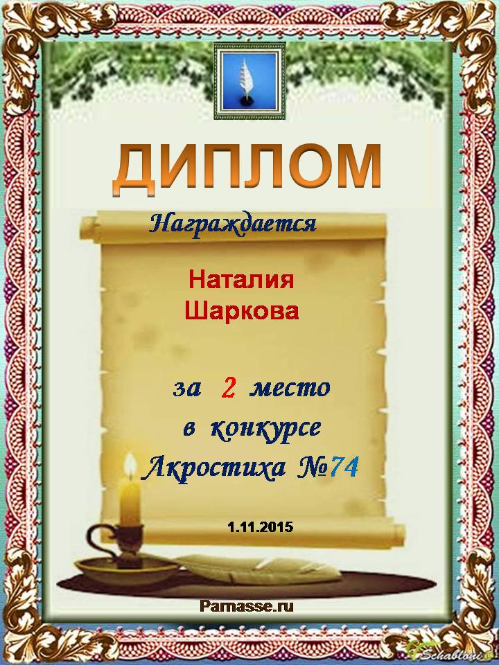 Диплом победителю в конкурсах Акростиха в связи с пятилетием конкурса Акростиха!