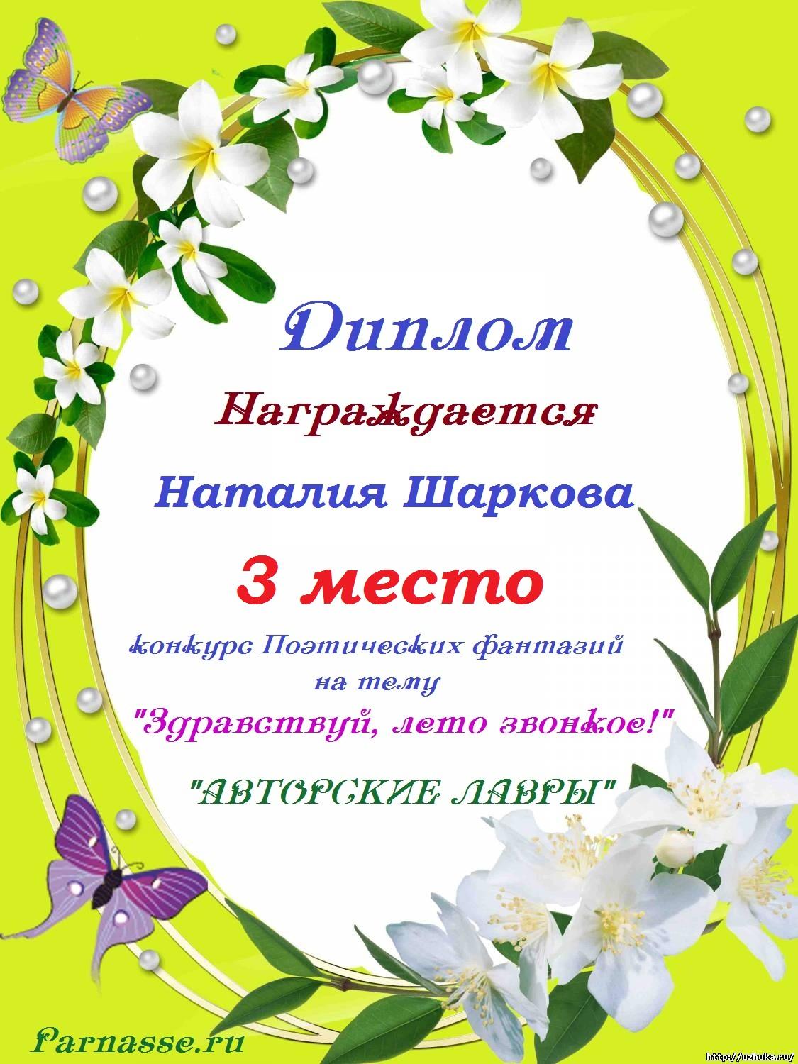 Победителю конкурса:"Здравствуй,лето звонкое!"