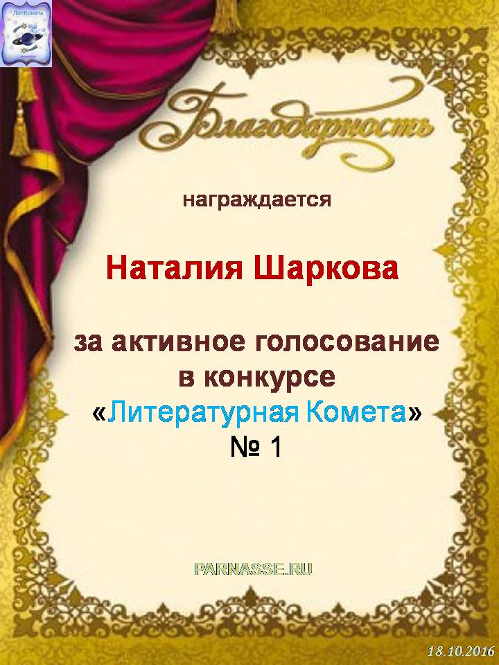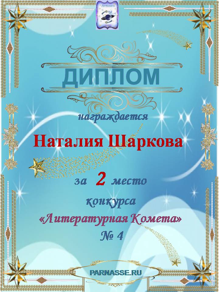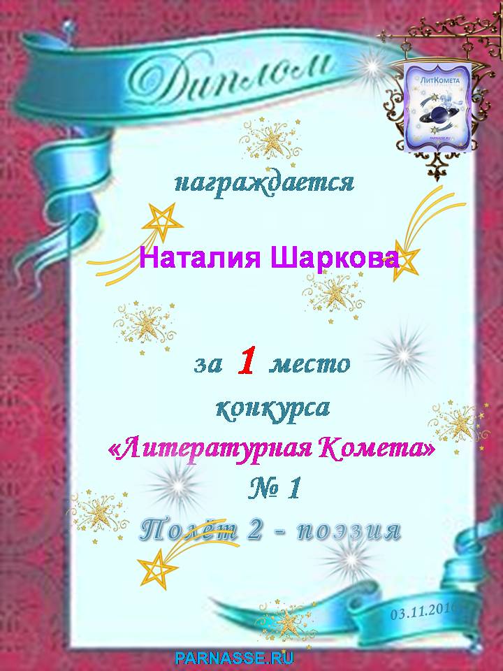 За 1 место в номинации "Поэзия" в конкурсе "Литературная Комета - Полёт № 30"
