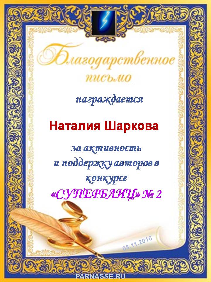 Благодарю за участие и поддержку конкурса! Желаю творческих успехов и удач!