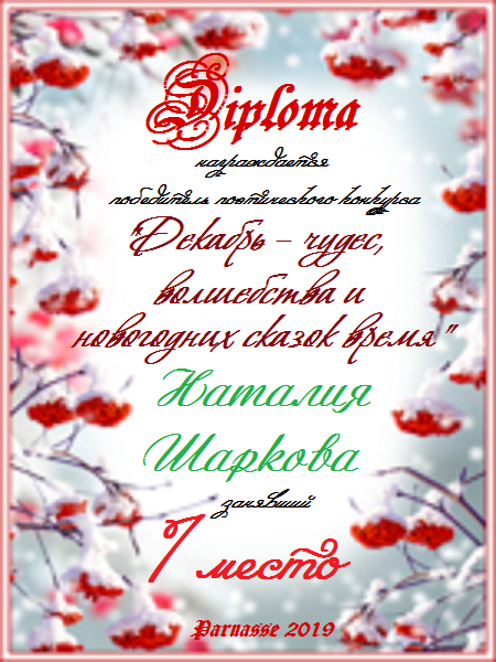 Первое место в поэтическом конкурсе "Декабрь – чудес и новогодних сказок время". Поздравляем!