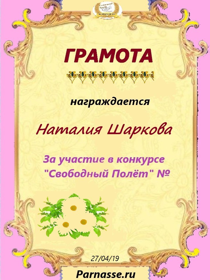 за участие в конкурсе " Свободный Полёт" № 26