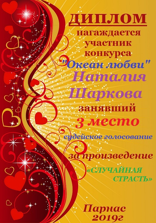 Третье место в конкурсе "Океан любви", судейское голосование. Поздравляем с прекрасной победой!