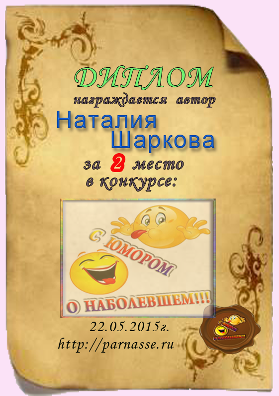 Диплом за 2 место в конкурсе " С юмором. о наболевшем"