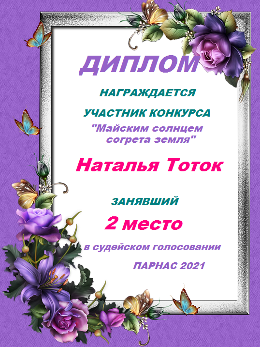 Второе место в судейском голосовании по итогам конкурса "Майским солнцем согрета земля"