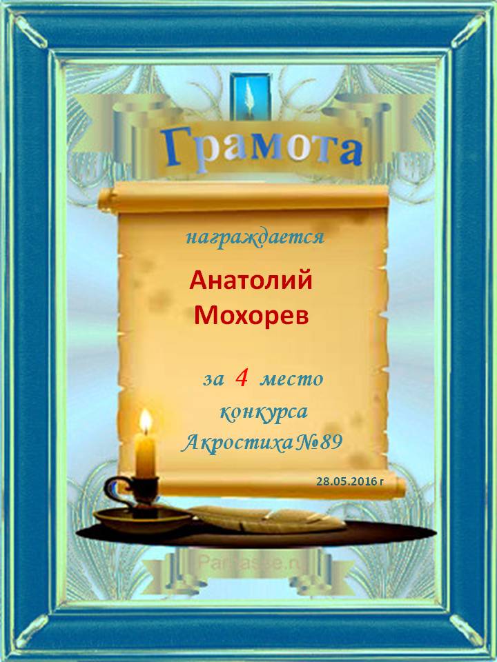 Грамота за 4 место в 142 конкурсе АКРОСТИХА (Альтернатива)! ПОЗДРАВЛЯЮ!
