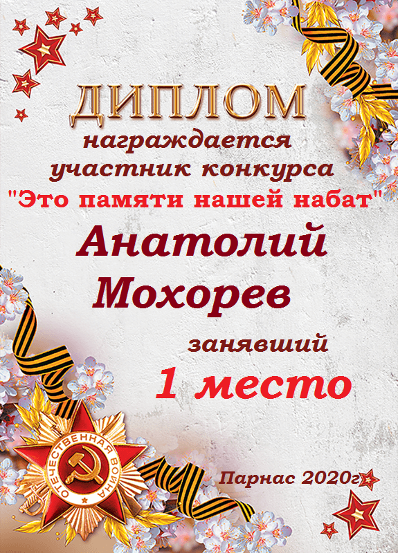 За победу в конкурсе "Это памяти нашей набат". Поздравляем с Днём Великой Победы!