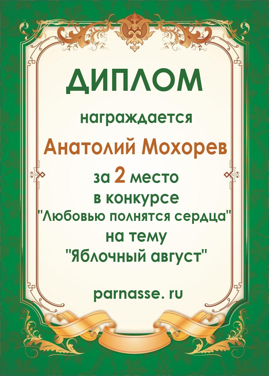 2 место в конкурсе "Любовью полнятся сердца" на тему "Яблочный август"