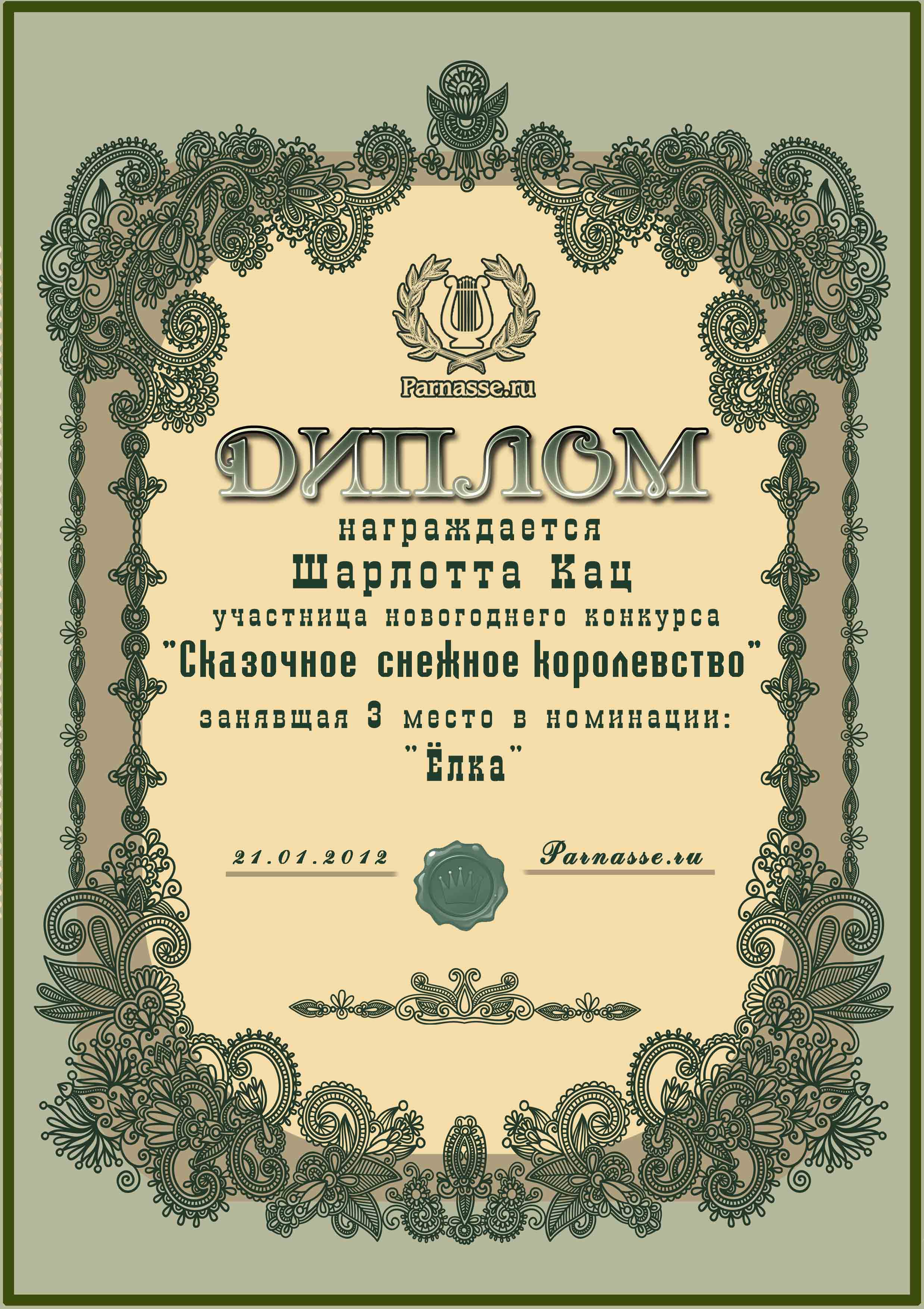 Диплом за 3 место в конкурсе "Сказочное снежное королевство!"
