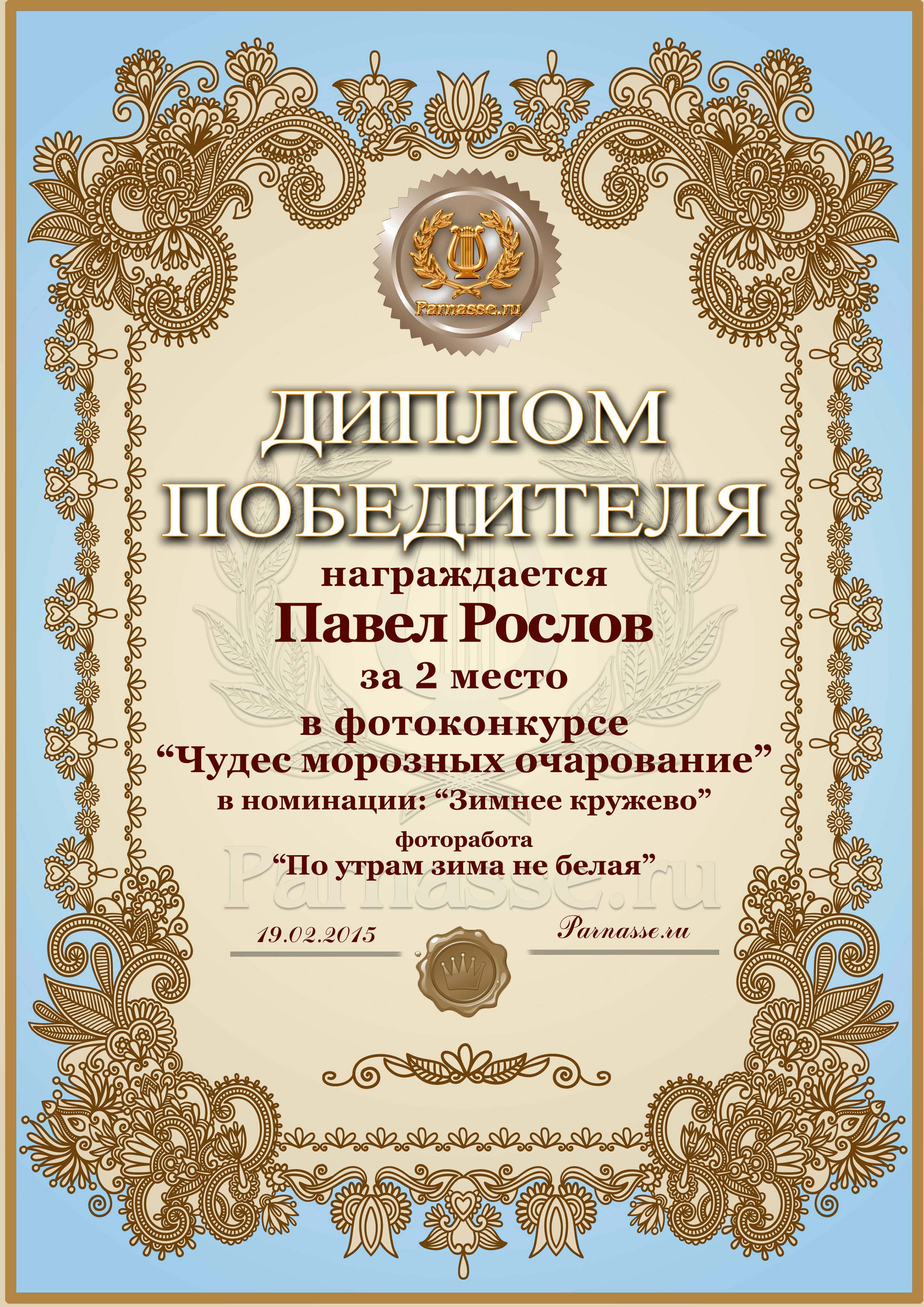 Второе место в фотоконкурсе "Чудес морозных очарование". Номинация "Зимние наряды - зимнее кружево". Фоторабота "По утрам зима не белая". Поздравляем с блестящей победой!