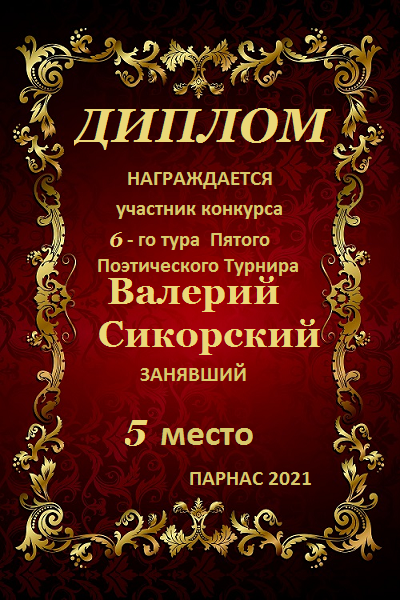 Шестое место по итогам 5-го тура Пятого Поэтического Турнира