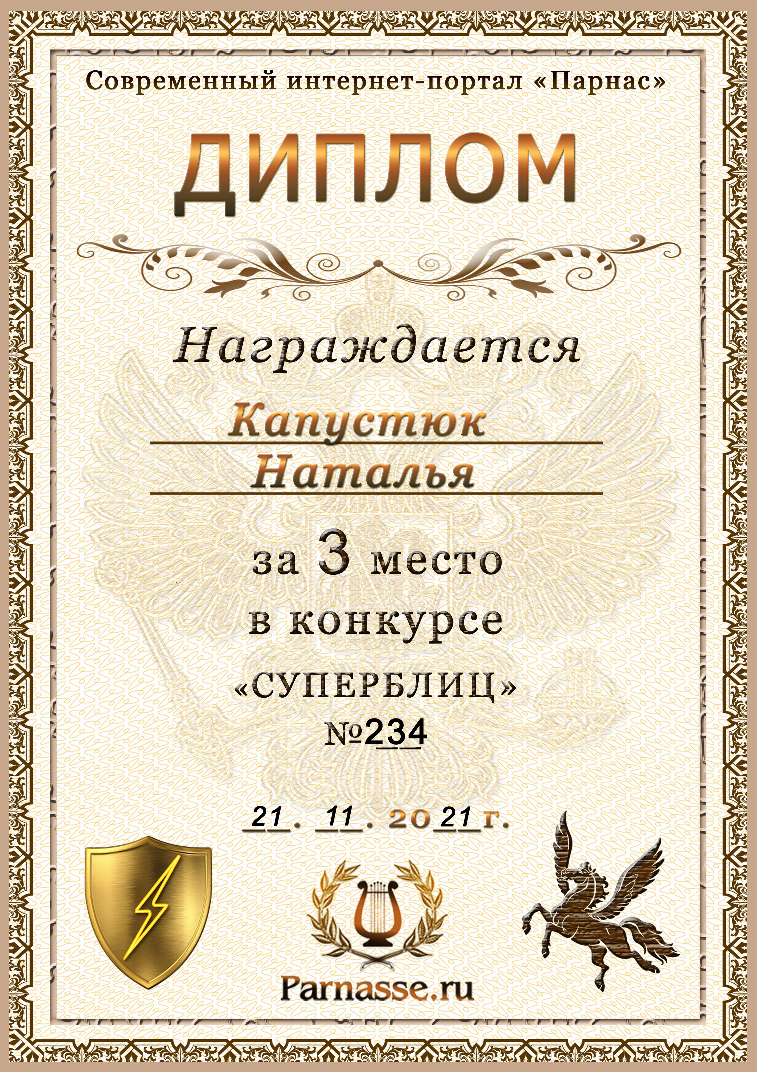 Диплом за 3 место в 101 конкурсе АКРОСТИХА (Альтернатива)! ПОЗДРАВЛЯЮ!