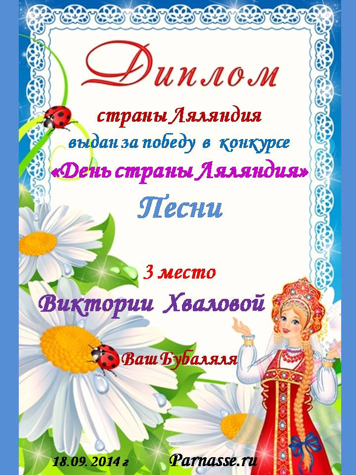 3 место в музыкальном конкурсе "День страны Ляляндия"