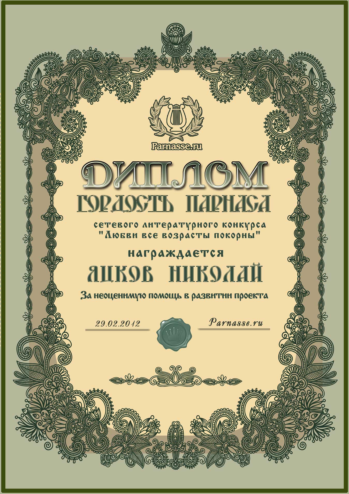 Диплом "Гордость Парнаса"