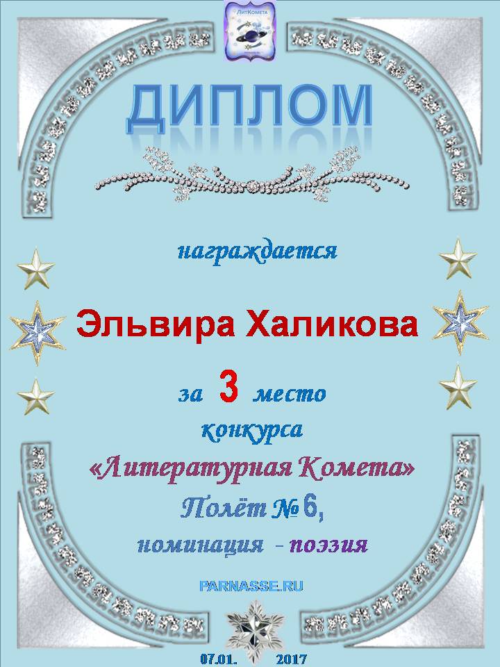 3 место в конкурсе "ЛитКомета" "Полёт" № 6 - поэзия