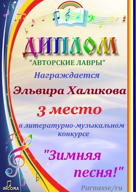 Благодарим Вас за участие в зимнем конкурсе в номинации "Стихи о Зиме". Произведение "В вальсе вьюги..."