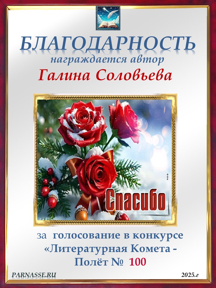 Спасибо за голосование в конкурсе "ЛитКомета - Полёт № 84"! Очень важна Ваша поддержка!