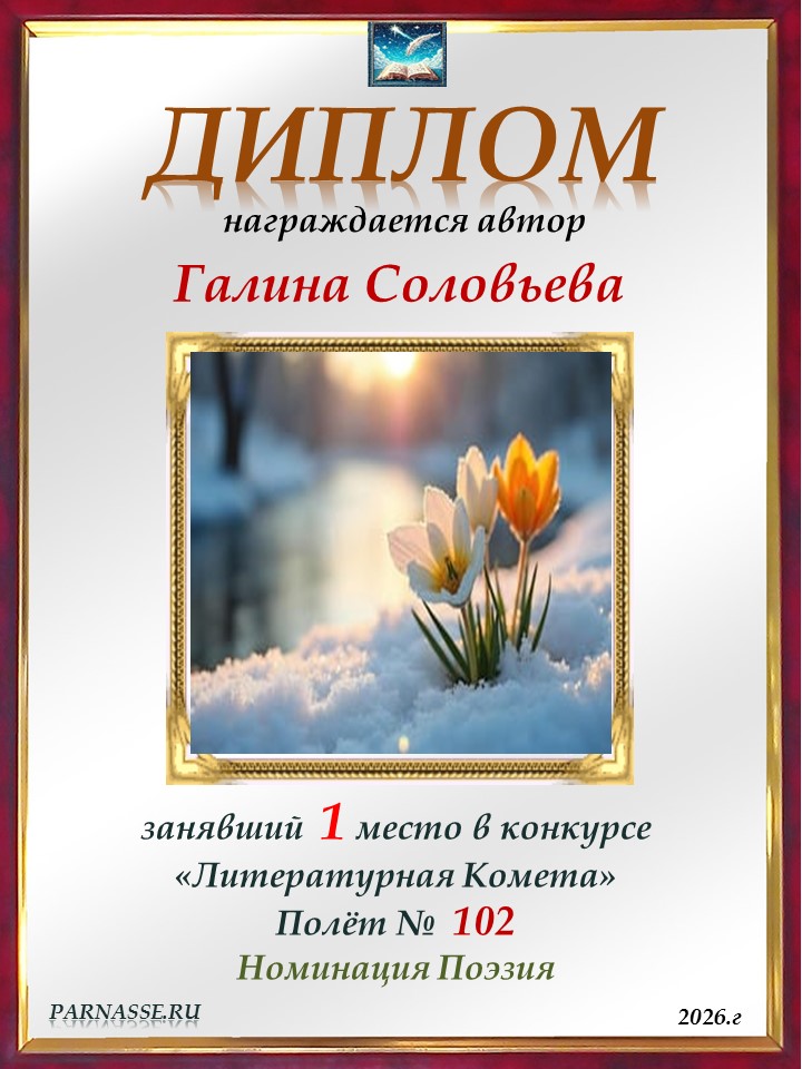 Поздравляю с занятым 1 местом в конкурсе "ЛитКомета - Полёт № 102" - Номинация Поэзия