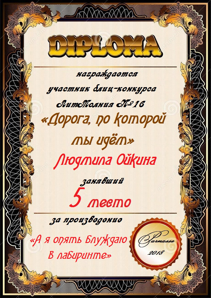 Пятое место в Блиц-конкурсе №16 «Дорога, по которой мы идём» за произведение «А я опять блуждаю в лабиринте». Поздравляем!