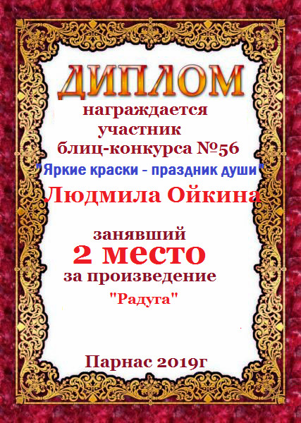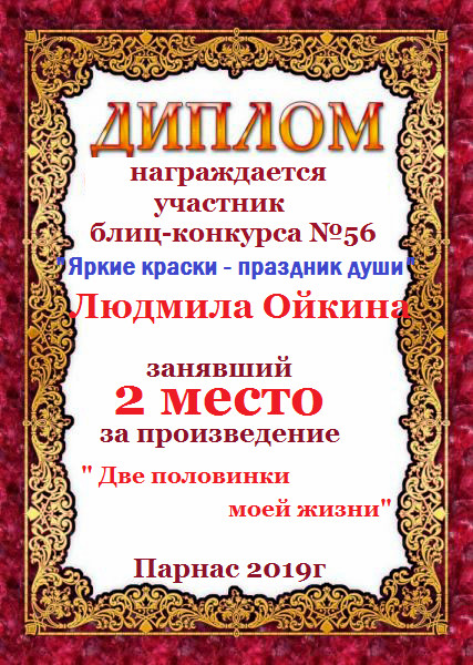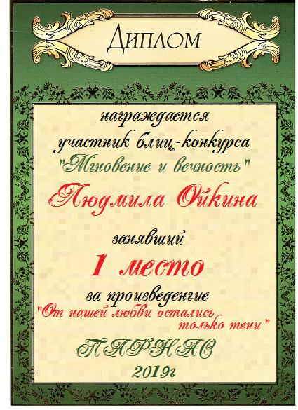 Второе место в Блиц-конкурсе №19 «Знак внимания и уважения» за произведение «Подари мне надежду на счастье». Поздравляем!