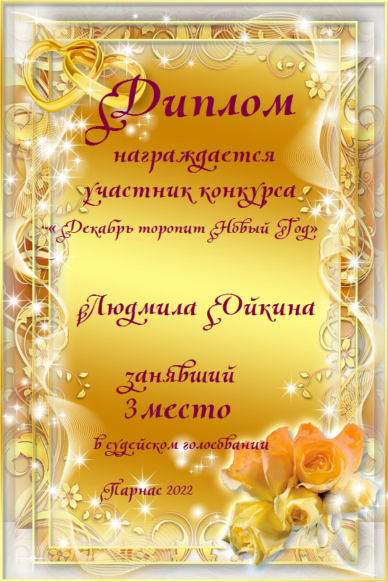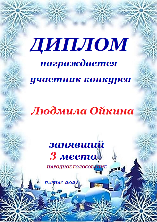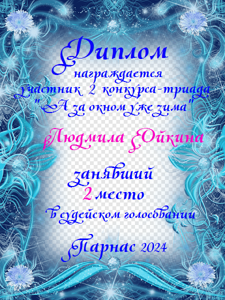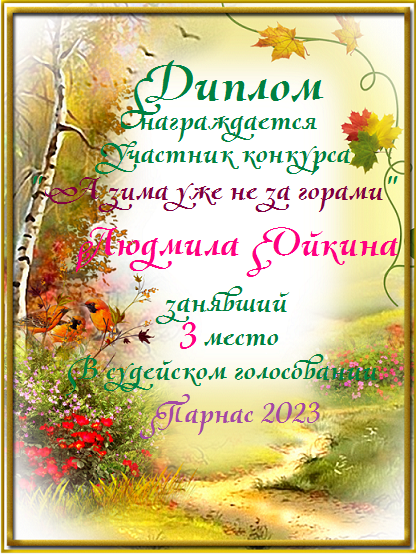 Третье место в судейском голосовании по итогам третьего конкурса - триада "А зима уже не за горами"