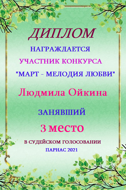 Третье место в судейском голосовании по итогам конкурса "Март - мелодия любви"