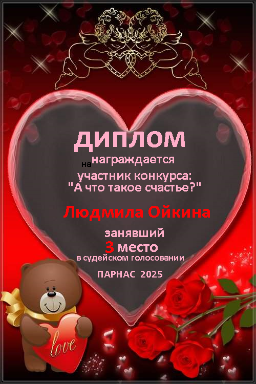Третье место по итогам конкурса "А что такое счастье?"