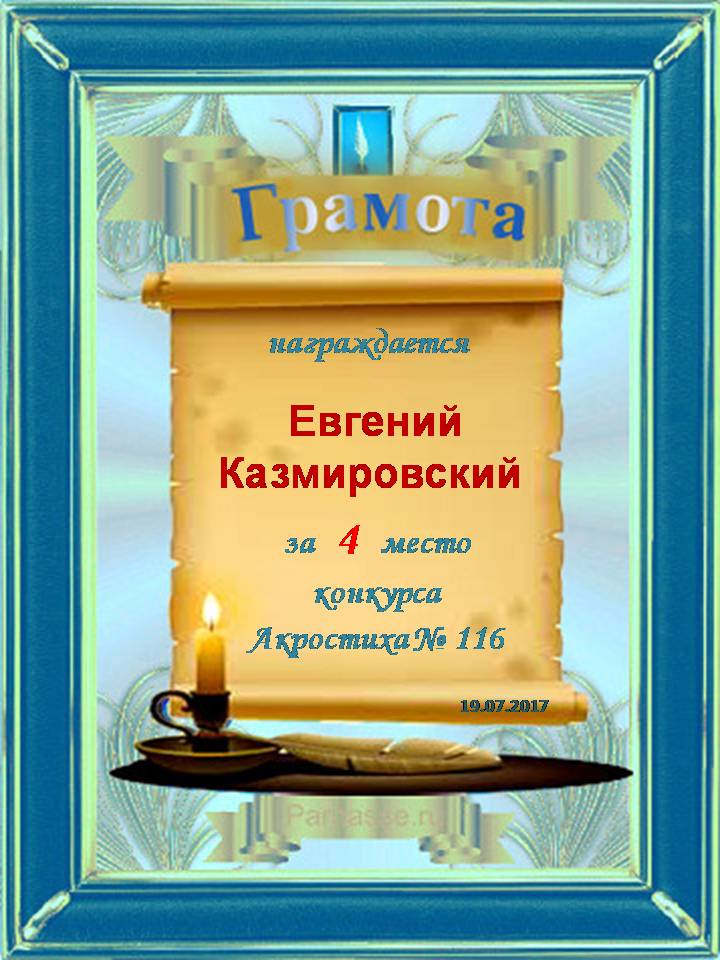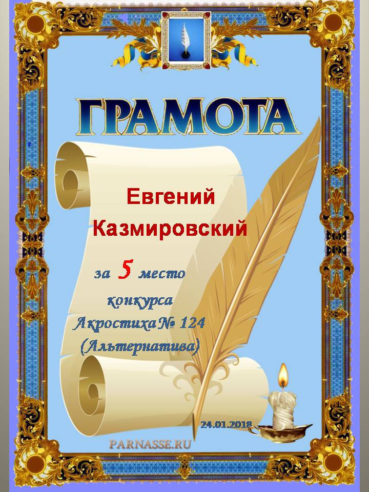 Грамота за 5 место в 124 конкурсе АКРОСТИХА (Альтернатива)! ПОЗДРАВЛЯЮ!