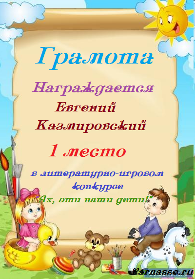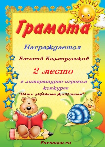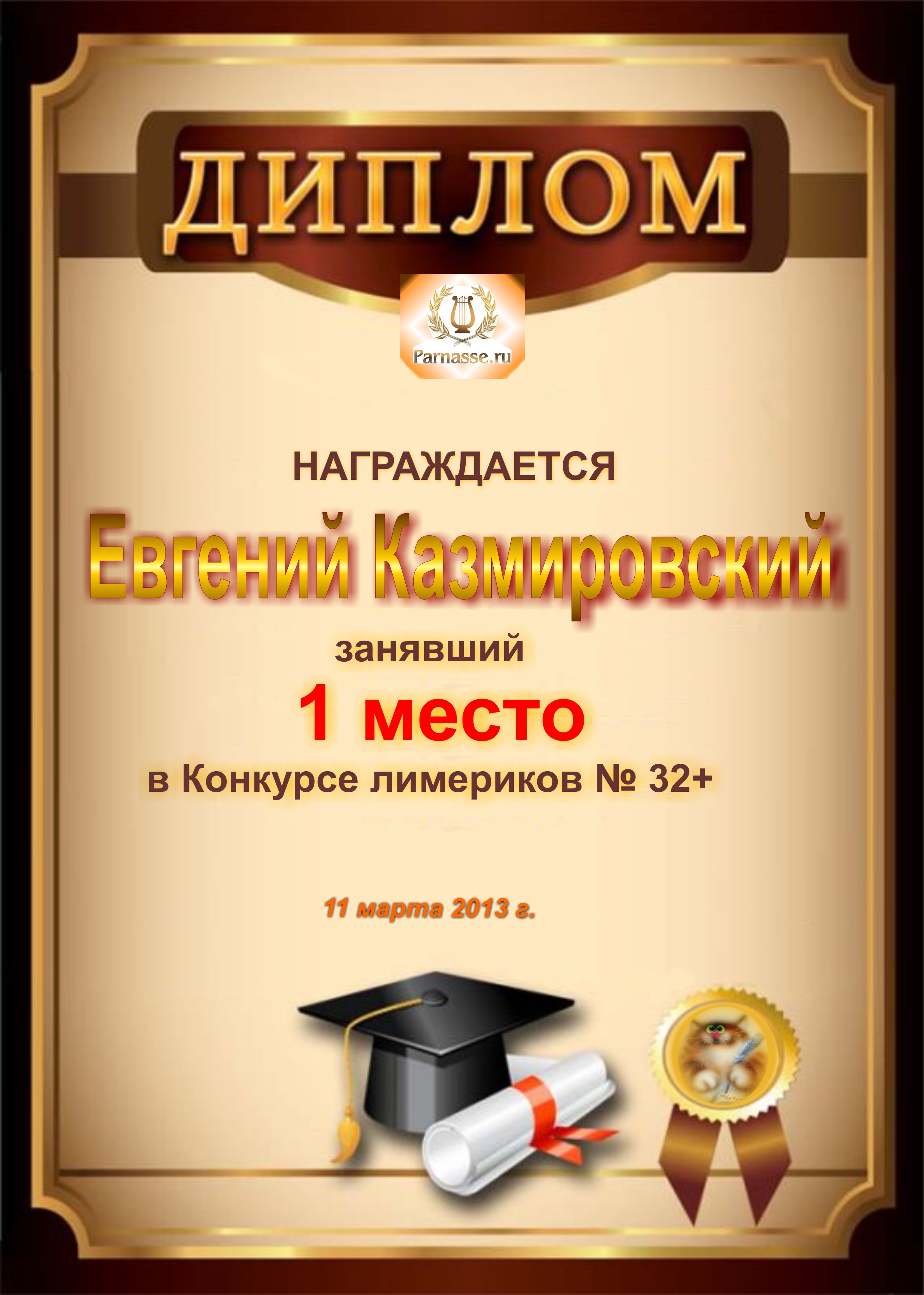 Похвальная грамота за 5 место в конкурсе лимериков № 34+ (8.04.2013 г.)