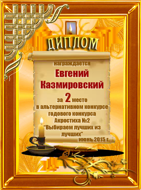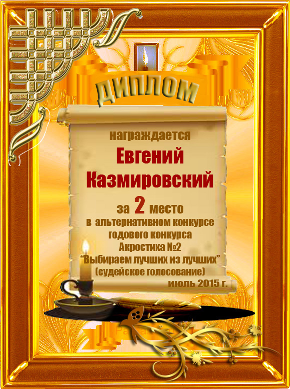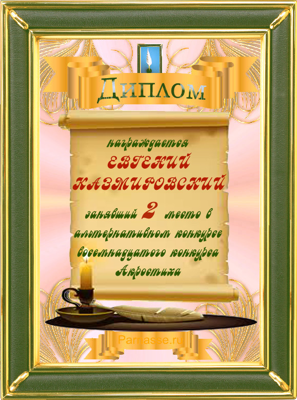 Диплом за 2 место во 2 годовом конкурсе Акростиха по итогам судейского голосования (Альтернатива)! ПОЗДРАВЛЯЮ!