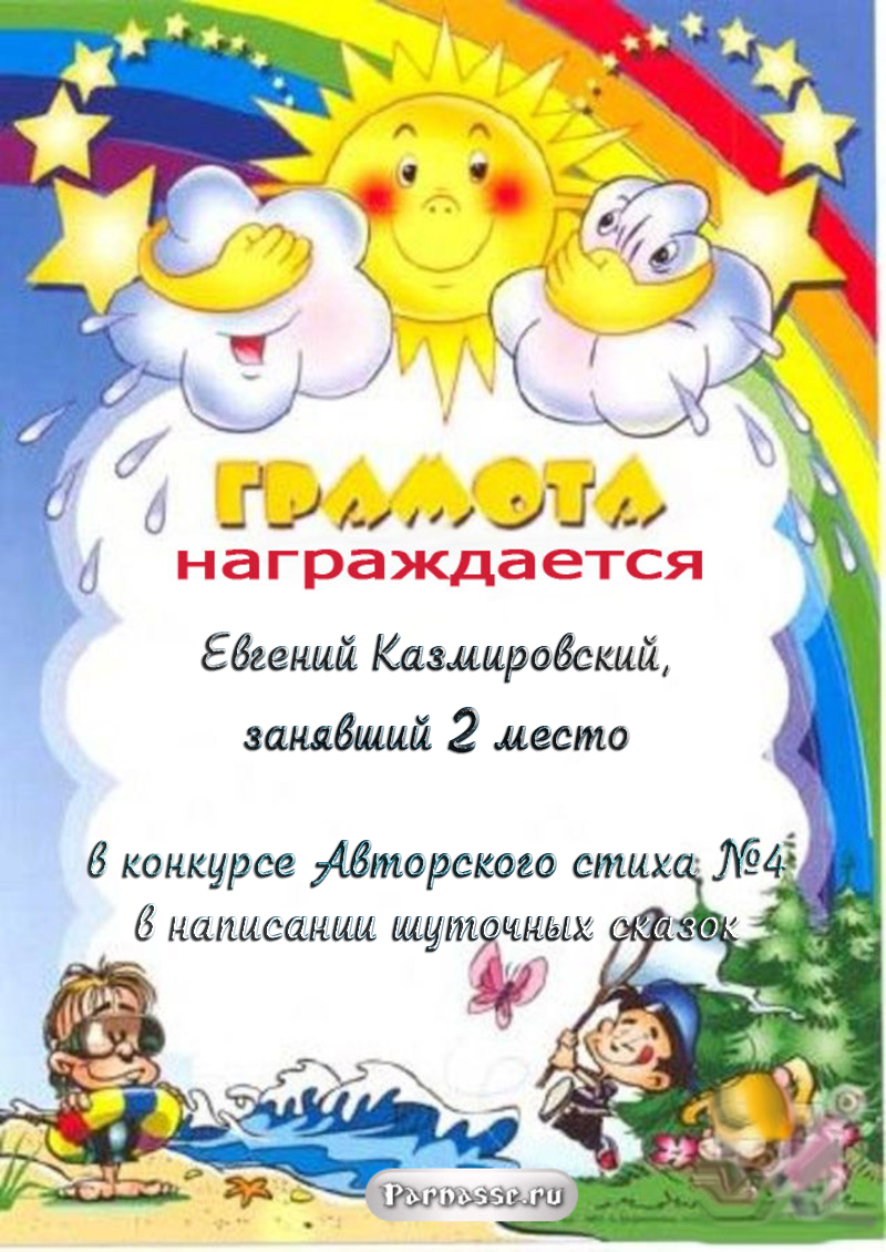 За второе место в конкурсе Фанфик пародий. Номинация - поэзия.