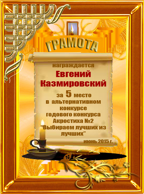 Грамота за 5 место во 2 годовом Альтернативном итоговом конкурсе АКРОСТИХА! ПОЗДРАВЛЯЮ!