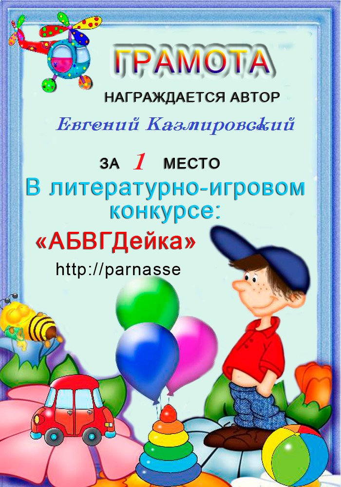 Диплом победителю в конкурсах Акростиха в честь пятилетия конкурса Акростиха!