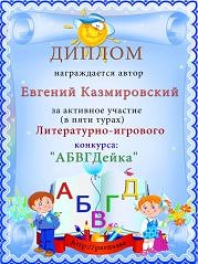 Похвальная грамота за 5 место и активное участие в конкурсе лимериков № 62+ (24.11.2014 г.)