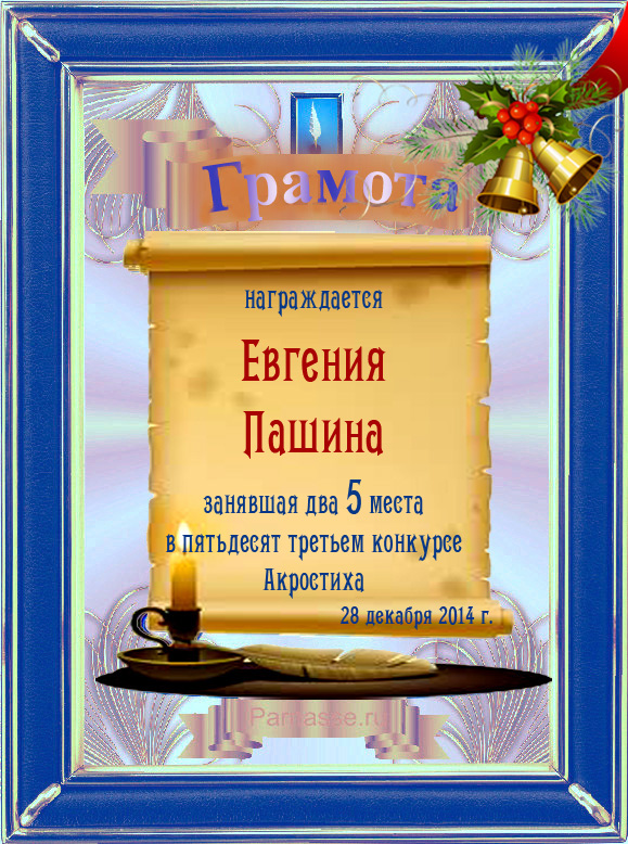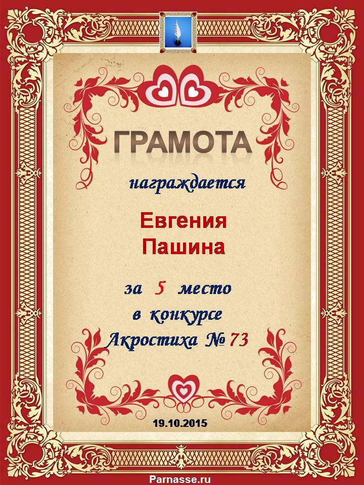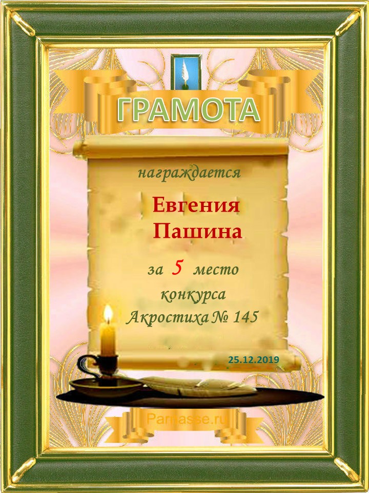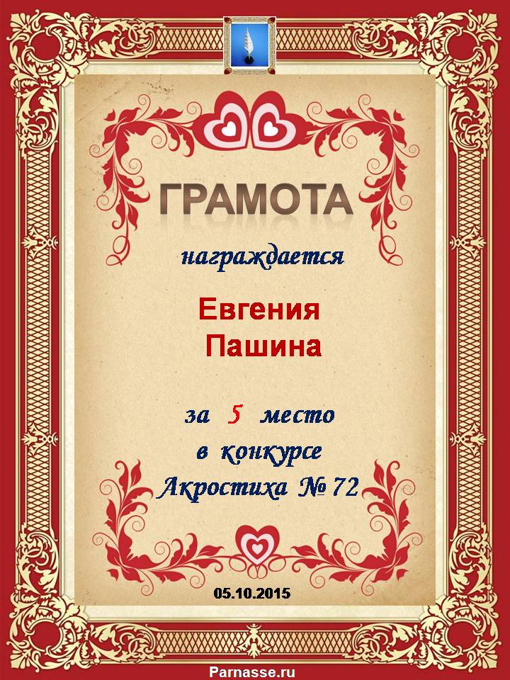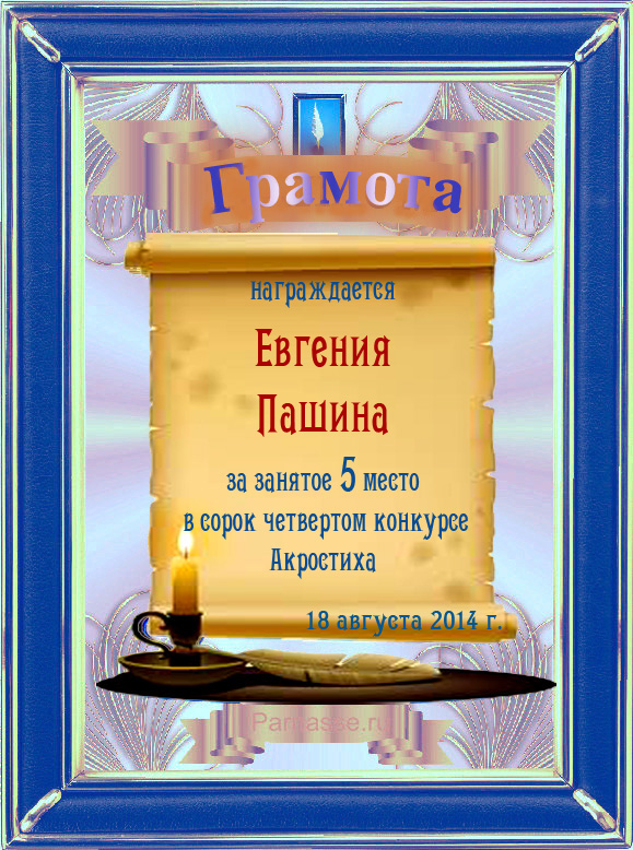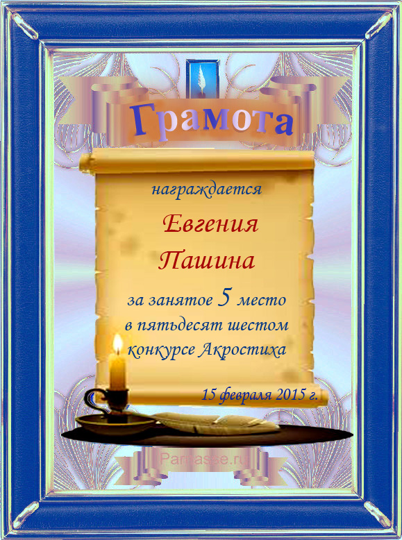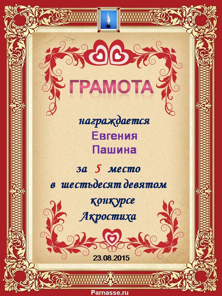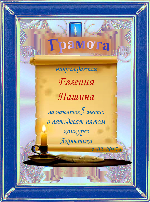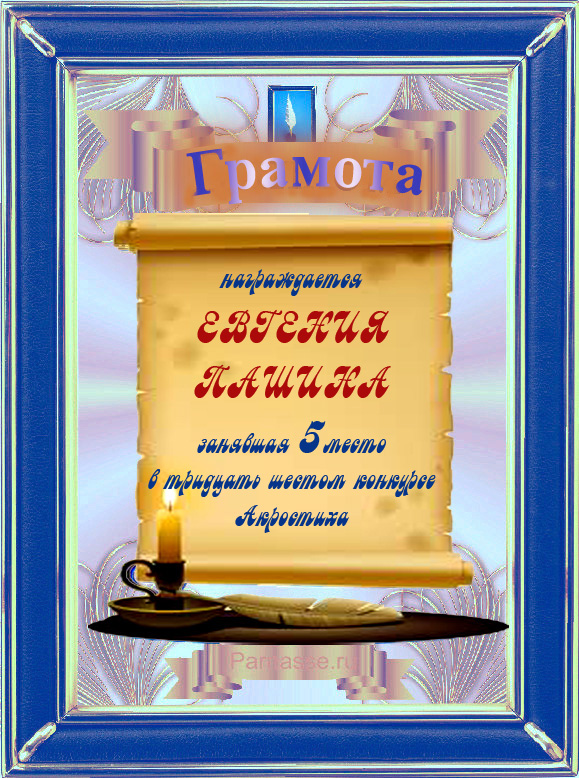 Грамота за 5 место в 106 конкурсе АКРОСТИХА (Альтернатива)! ПОЗДРАВЛЯЮ!
